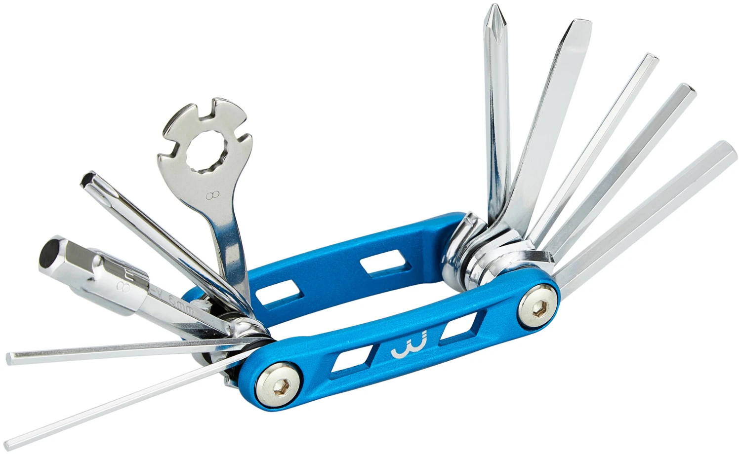 Pour tous les cyclistes pour qui leur atelier sur la route est particulièrement important, BBB a la série PrimeFold dans son programme. Le petit multi-outil léger avec un boîtier en aluminium anodisé bleu offre des outils chromés avec 14 fonctions différentes. Le revêtement les rend robustes et vous pouvez les utiliser avec encore plus de puissance. Le multi-outil est vissé des deux côtés et a une conception durable.