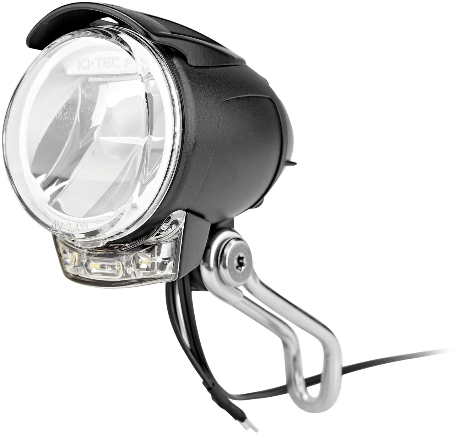 Sous le projecteur principal, qui apporte la lumière brillante et homogène de l’IQ-TEC sur la route, des points LED sont disposés en une ou plusieurs rangées. Ils servent exclusivement à la signalisation des autres usagers de la route. Cette fonction ne peut pas être assurée uniquement par un projecteur vélo correctement réglé, car son faisceau lumineux – limité vers le haut par la ligne de coupure nette – est dirigé vers la chaussée en faisceau maximum. La variante de l’éclairage avec réflecteur intégré dispose également de l’éclairage de sécurité et de proximité.