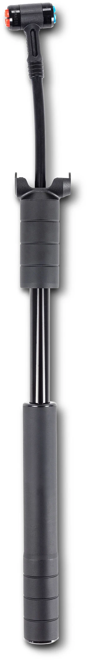 Être à plat sur les sentiers ? Cela ne signifie pas forcément la fin de votre sortie ! La pompe RACE FLEX HV usinée CNC gonfle rapidement le pneu, avec une pression pouvant atteindre 80 psi. Ceci est assuré par l’énorme volume de la pompe et par la tête EZ pour les valves Presta et Schrader avec tuyau extractible.