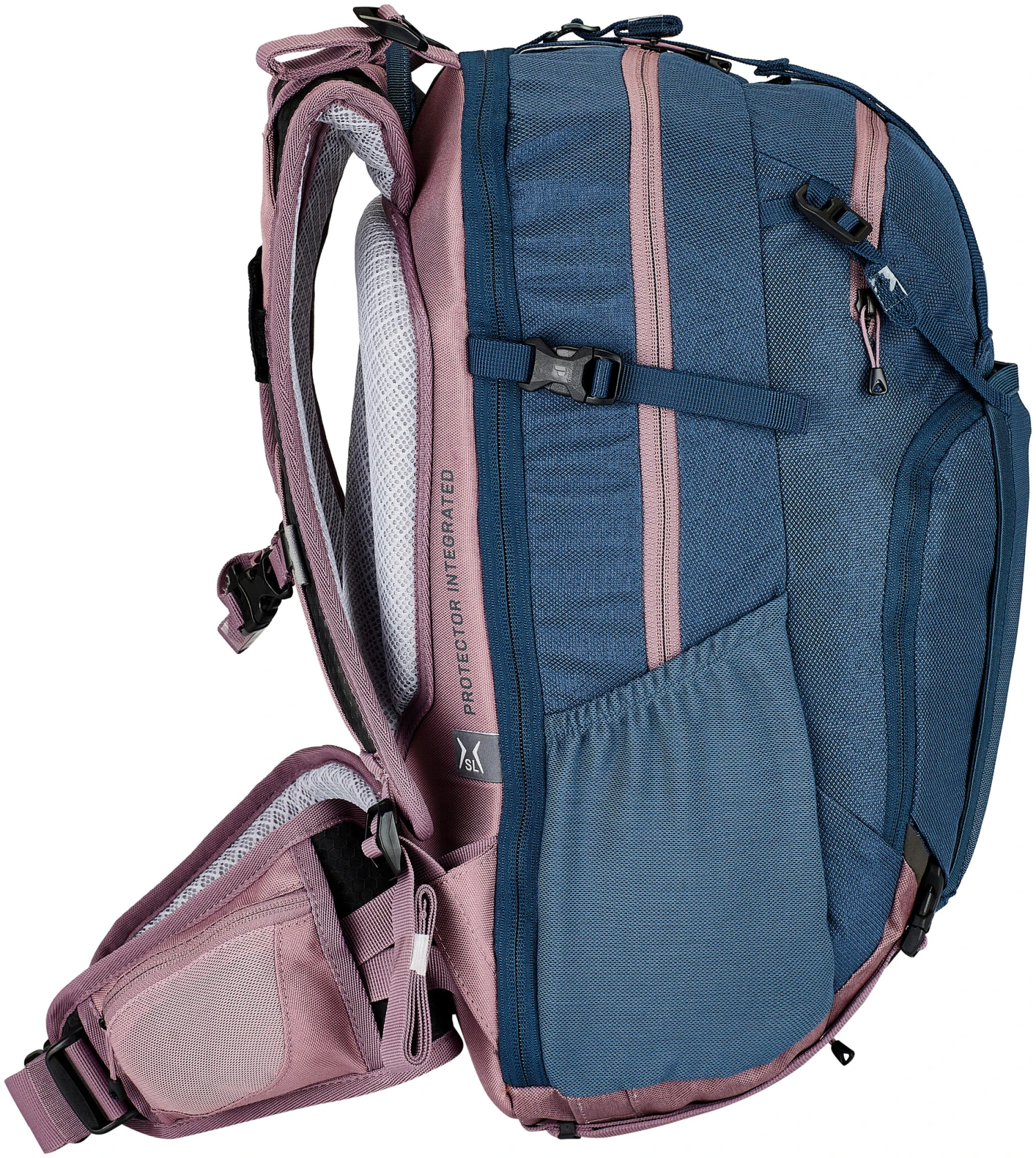 Ce modèle est disponible en version SL. La spécificité de ce sac à dos SL pour femmes se voit dans la longueur de la partie dorsale : en moyenne, le dos des femmes n’est pas aussi long que celui des hommes. Le système SL est donc légèrement plus court que celui des sacs à dos standards proposés par Deuter. De plus, le système de portage est spécialement adapté à la morphologie féminine.