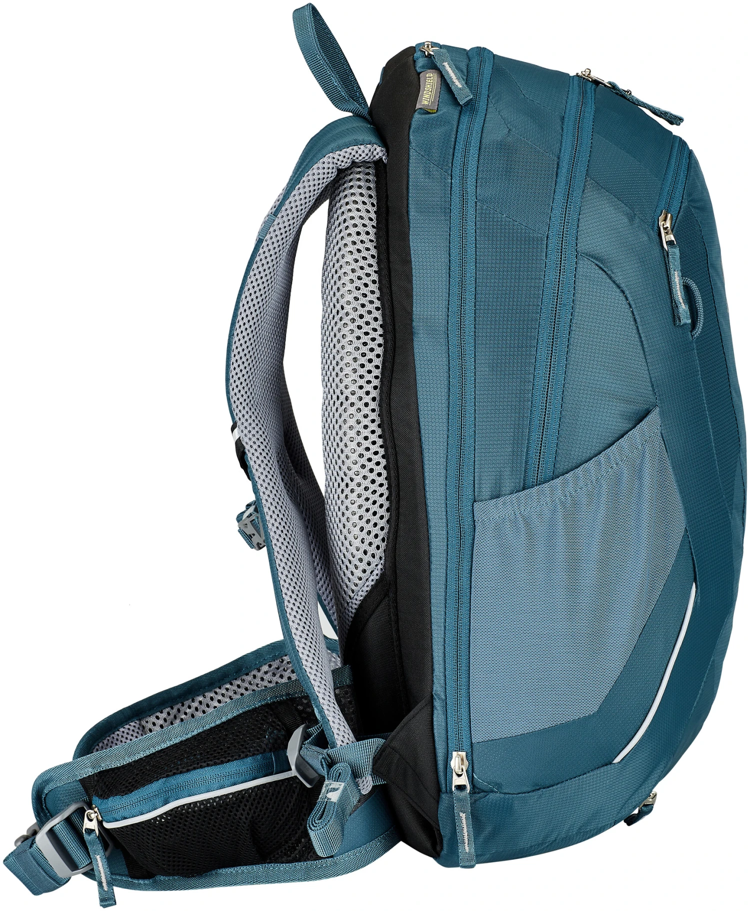 Grâce à des stabilisateurs sur la hanche avec rembourrage. La construction Auto-Compress de la ceinture avec compression latérale automatique et ajustement Pull-Forward permet de maintenir fermement le sac à dos bien en place.
