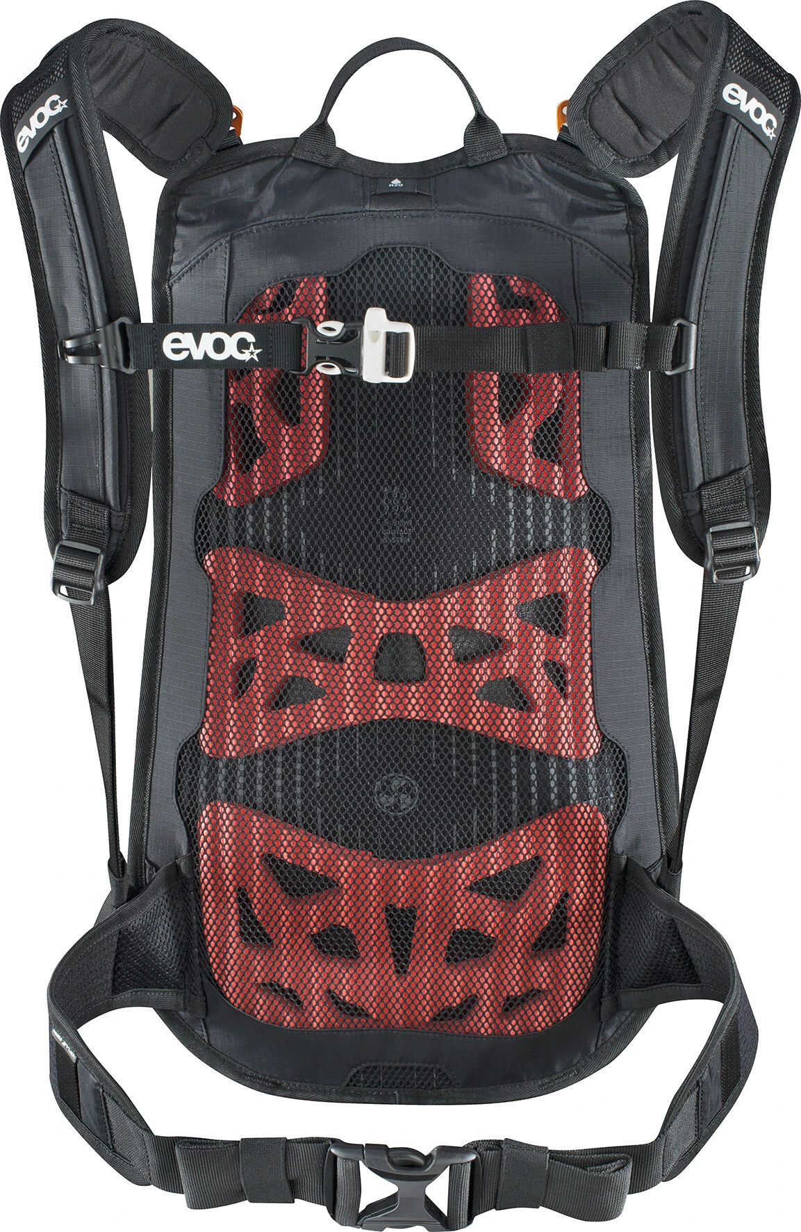 Le but est de transposer la charge de la manière la plus neutre possible vers le centre de gravité et de réduire en même temps les surfaces de contact avec le dos. Evoc élimine le déséquilibre à l’aide d’une pièce dorsale, sur laquelle les éléments utiles à l’aération tels que les grands canaux d’aération et les coussinets EVA perforés et à rainure spéciale, sont placés derrière un tissu en mailles à l’intérieur. Ainsi, le soutien va se situer au niveau du dos et l’aération du dos sera optimale. Les ailerons de la ceinture, les bretelles Air Mesh et les évents d’aération permettent une aération encore plus efficace.